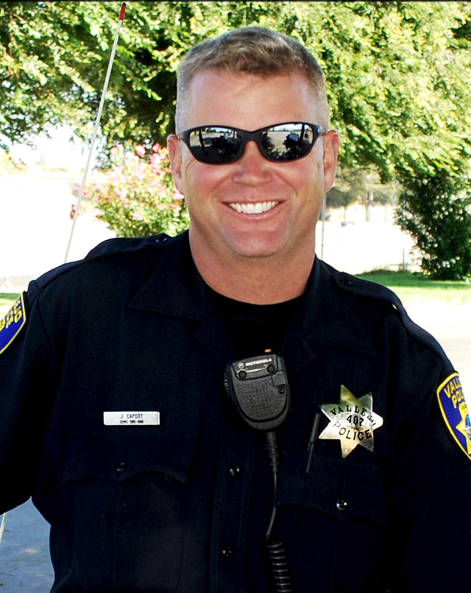 Officer James Lowell Capoot, of the Vallejo Police Department, died Nov. 17, 2011, in the line of duty while chasing after an armed man suspected of robbing a bank. The 45-year-old, who lived in Vacaville, California, joined the Vallejo Police Department in 1993 and served as a motorcycle officer, motorcycle instructor, driving instructor and SWAT officer. He received two medals of courage, including one life-saving medal, as well as many other department commendations. Capoot is survived by his wife, Jennifer; three daughters, Jillian, Jamie and Justine; mother, Beverly Sue; brother and sister-in-law, Louie and Susie DeCarlo; and several other family members. He is preceded in death by his father, Lowell Jesse Capoot.