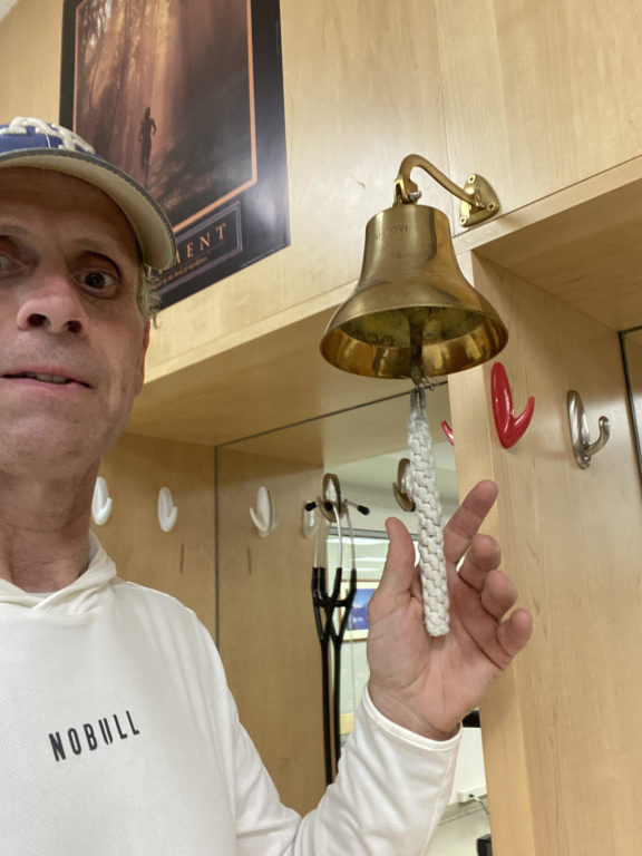 Erickson ringing the bell on “grad” day at cardiac rehab | Photo courtesy of Art Erickson