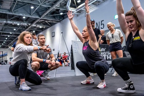 CrossFit recommends all athletes begin with an air squat — that is, without any weight other than bodyweight. As proficiency in the air squat improves, athletes can move toward the weighted squat variations: back squat, front squat, and overhead squat.